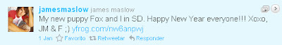 O James está com um novo cachorrinho (que por sinal é muito lindo), o nome dele é Fox. Ele tuitou e colocou um foto do Fox.